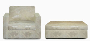 EDEL(エデル)は、ゆったりとした座り心地と上質な素材感を両立させた、ラグジュアリーラインのソファです。しっかりとした木製フレームに、アルマーニならではのデザイン性の高い生地を組み合わせているのが特徴です。肘掛けがテーブルのようにせり出したモデルもあり、機能性とデザイン性を兼ね備えています。状態が良いものや人気ファブリック仕様は、高価買取の対象になりやすい傾向があります。