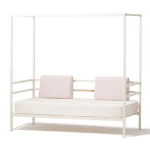 ライフスタイルに合わせてアレンジできるベッド。棚板、スマホスタンド、フレームといった便利なパーツつきでベッドを囲うフレームは室内干しやハンガーとしても活用できますし、市販のカーテンを飾れば天蓋ベッドにもなります。背クッションが2つ付属していますので、ソファとしても使えます。