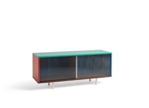 カラーキャビネットはベルギーのデザインデュオ、ミュラー・ヴァン・セヴェレンがデザインしました。機能性を持ちつつも、鮮やかな色使いとミニマルなデザインといった相反する要素が特徴です。収納棚やディスプレイとしても使えるため、住まいでも公共空間でも活躍します。