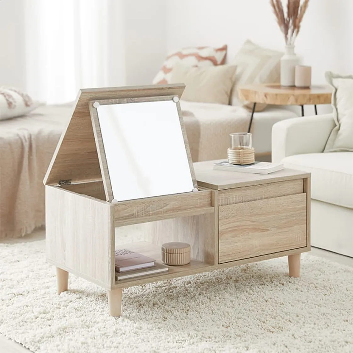 ロウヤの家具はトレンドのデザインと実用性の高さが魅力となっています。北欧系のシンプルで暖かみのある家具から、収納が難しい小物類をきれいに整理できる棚、マットレスの形を選ばず使えるベッドフレームなどかゆいところに手が届く家具が豊富です。また「見せる」と「隠す」を両立した家具も多く、インテリアのアクセントになるとSNSでも話題になっています。組み立て家具が中心ではありますが手の届きやすい値段設定のおかげで、特に20代から30代から支持されています。
