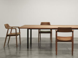 1990年代には日本人独自の木への美意識とマルニの感性に加えて国際的なデザイン感覚を融合した家具作りに着手し世界に発信するようになりました。伝統的な家具の美しさを受け継ぐグレースやブリタニアといったシリーズのみならず、ネクストマルニのような世界的デザイナーが日本の美意識をテーマとした新しい試みのシリーズなどを発表し、様々な切り口で木工家具へのアプローチを試みています。