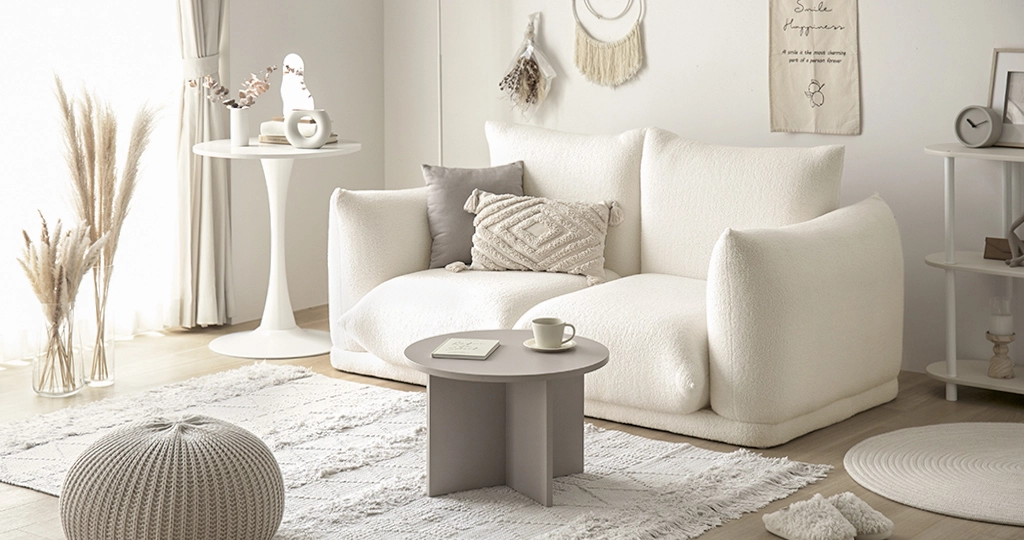 部屋の間取りを気にせず自由にレイアウトでき、脚を外してローソファにもできます。