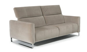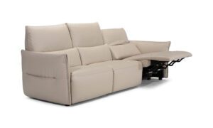 細いアームと金属製の脚がスタイリッシュなソフィは、背もたれやオットマンの角度を自由に変えられるなど機能面でも充実しています。