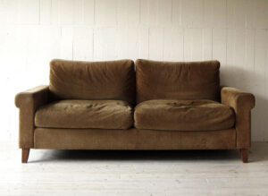 2002年の発売以来、売れ続けているというベストセラーです。張地に使用した太ウネのコーデュロイとフェザークッション、コイルスプリングによる座り心地は、格別のもの。奥行きが深くとられているので、簡易的なベッドとしても使えます。