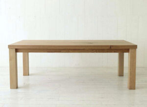 ホワイトオークの分厚い天板とどっしりとした脚を持つテーブルも、1999年以来販売を続けているロングセラーです。節や割れをあえて残すことで個性を演出しているほか、オイルフィニッシュだけで仕上げた風合いも魅力となっています。