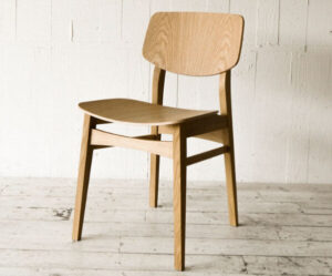 写真では背もたれと座面の両方が木製ですが、背もたれもしくは座面のみ布張りのタイプも好評です。
