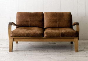 独特の風合いが与えられたレザーとホワイトオーク材のフレームが頼もしい、2シーターのソファです。半年もかけて仕上げたレザーには、少々のキズなら味わいに替えてしまう力が宿ります。