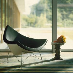 ヴィトラの発展に大きく関与したジョージネルソンのココナッツチェアは自由に座れて身動きが自由に出来るように考えられた大きなカーブが特徴です。ヴィトラ製のものとハーマンミラー製のものも有りますがいずれの物も希少なデザイナーズ家具として需要が高いです。