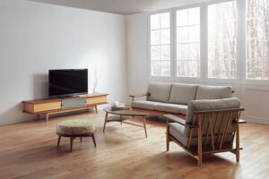 柏木工は飛騨高山の優良メーカーの一つですが、他の地元メーカーに比べてデザイン性の高い、モダンデザイン寄りの家具作りに力を入れているのが特徴です。特筆すべきは2014年から3年連続でグッドデザイン賞を受賞しており、全国的にも知名度を高めています。デザインの特徴は人気シリーズであるシビルなどに見られる二つの木材を使用する事でモダンデザインだけでなくナチュラル系や北欧系との組み合わせの相性も良い事が挙げられます。ウォールナットとオークの色の違いのコントラストにより「抜け感」を生み出す事でより洗練された空間作りを可能としています。