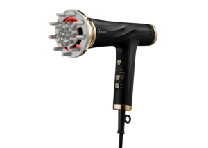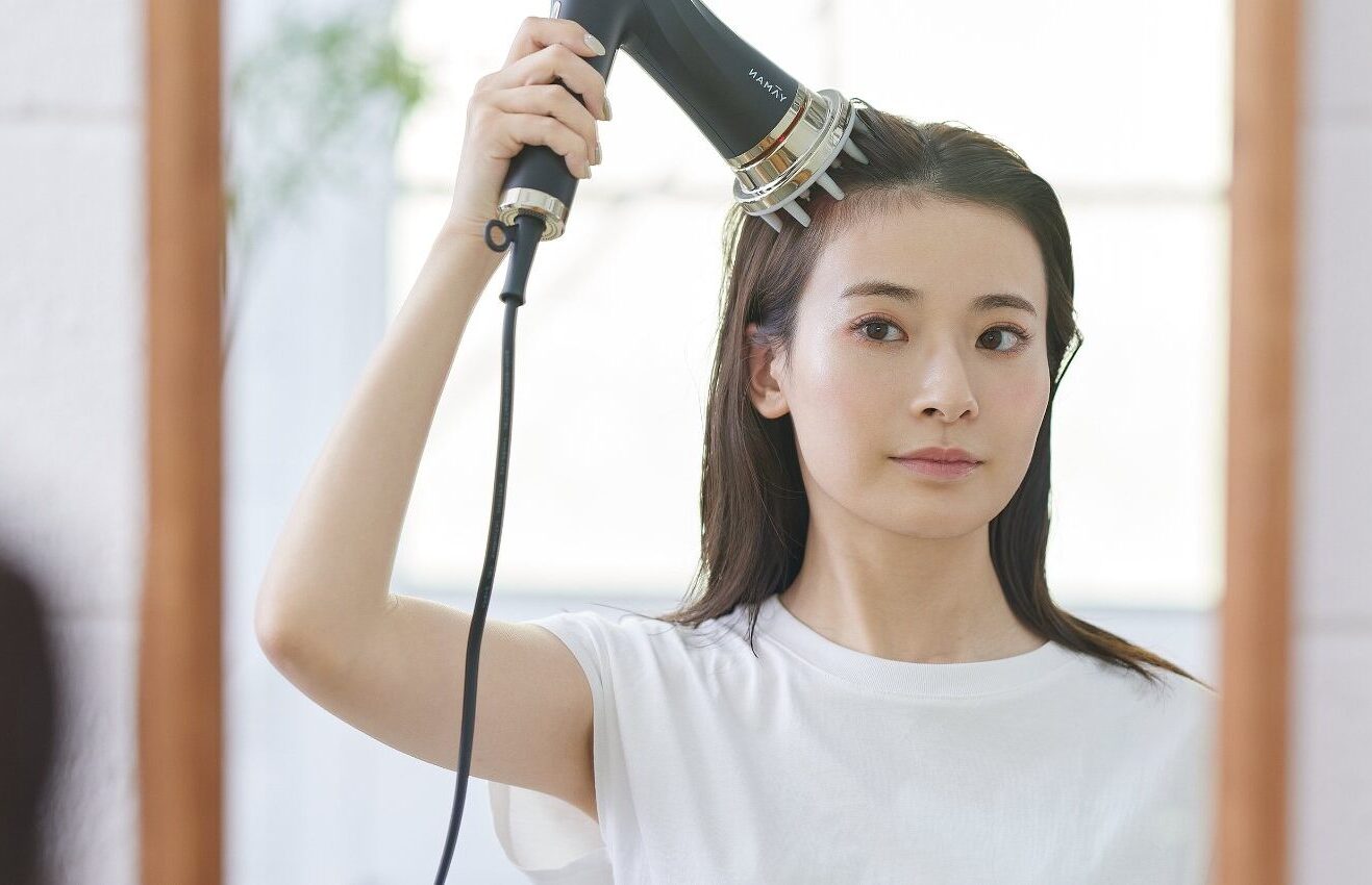 ドライヤーで髪を乾かす時間をリフトケアの習慣にする、ヴェーダリフトドライヤー。付属の「リフトヘッド」を装着すると、イオン導入と音波タッピングによるスキンケアが可能で肌や頭皮をリフトアップします。また独自のブラシレスDCモーターが低温かつ大風量の速乾ドライを実現していますので、手ぐししながら乾かすだけでストンとまとまる髪に仕上げます。