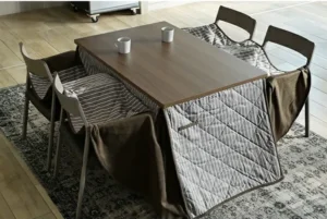 高さが4段階で調節できるダイニングこたつ。座椅子と一緒にセンターテーブルとしてはもちろん、ダイニングチェアとセットで使える高さにも調節可能です。冬は付属の布団をつけてこたつとして、その他の季節は布団を外してテーブルとして使用できます。布団は洗濯機で丸洗いもOK。国内トップクラスメーカーであるメトロ電気工業製のヒーターユニットが、即座に足元を温めてくれます。