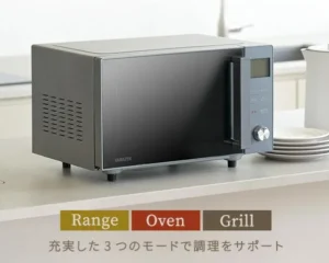 ミラーガラス採用の魅せるオーブンレンジです。7種のオートメニューがあり、ダイヤルを回すだけで簡単に操作が可能です。レンジ機能は料理の温め直しはもちろん、冷凍食品の解凍に適しています。庫内は広々としたフラットテーブルのため、回転式だと入らない大きな四角いお弁当の温めも可能です。角皿が付属していますので、クッキーやパンなども焼けて料理の幅も広がります。