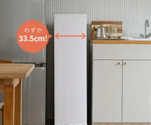 冷蔵庫の冷凍スペースが足りない、まとめ買いを冷凍保存したいといったお悩みを解決するのに近年需要が高まりつつあるサブ冷凍庫としてぴったりな、幅33.5cmのスリム冷凍庫です。約40cmの新聞紙1枚分のスペースがあればゆったり設置できますので置き場所にも困りません。7段階の温度調節が可能ですので、庫内の食品の量や好みに合わせて調節できます。
