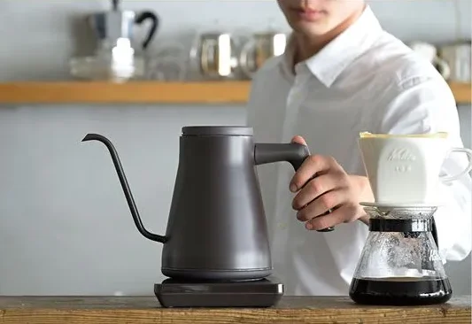 累計37万台を突破した人気の細口電気ケトルです。シンプルでおしゃれなデザインな上、逆さにしても蓋がしっかりと閉まる安全設計が嬉しいポイント。50℃から100℃まで温度調節が可能で保温機能もついています。くすみカラーを中心とした5色のカラーが用意されています。