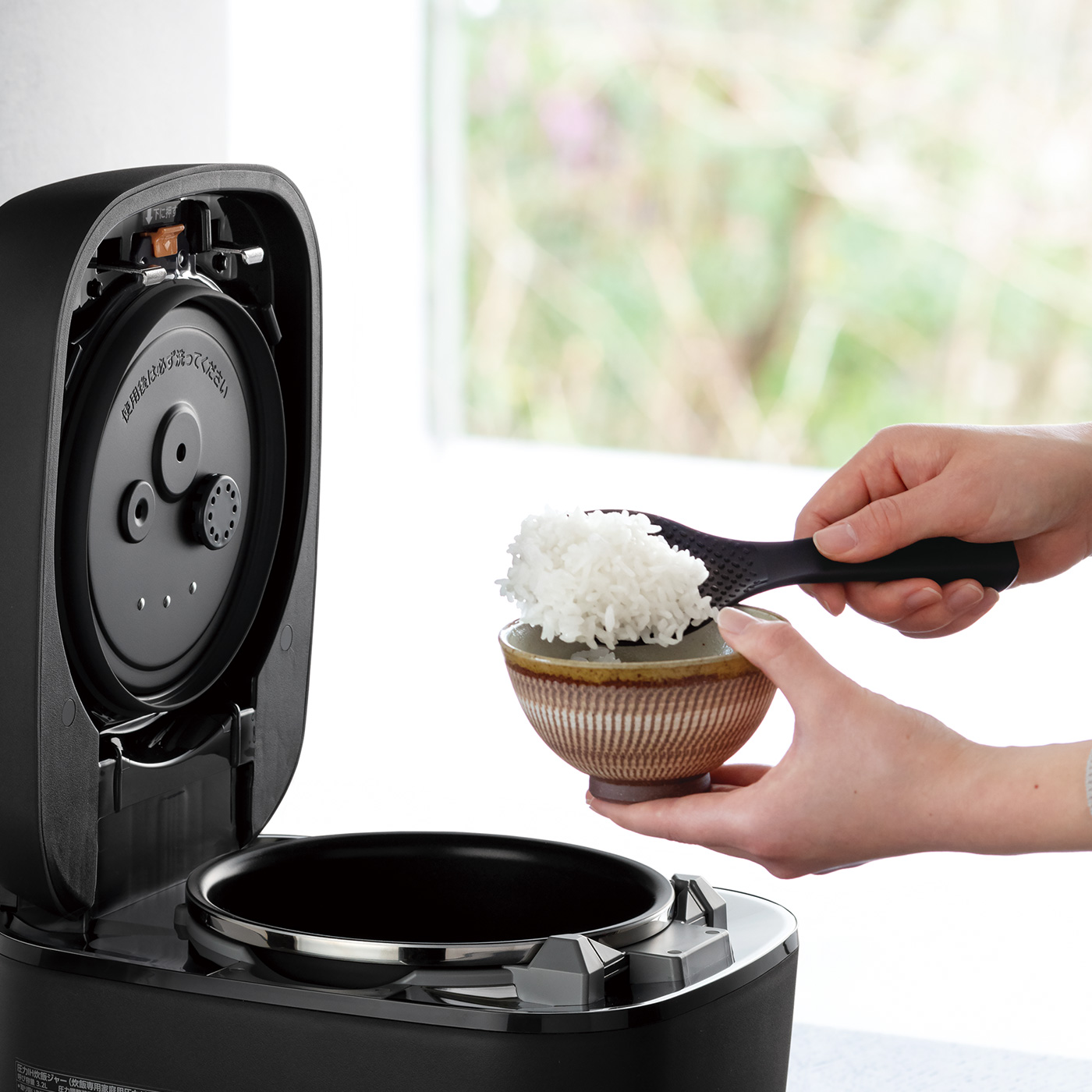 激しくゆらぐ炎がお米を激しく舞い上げ炊き上げる圧力IH炊飯ジャーです。くろがね仕込み鉄が含まれる豪炎かまど釜が炎舞炊きの集中加熱を活かします。好みの食感に調整できる「わが家炊き」はお米の銘柄や季節に関係なく81通りの炊き方から選べます。