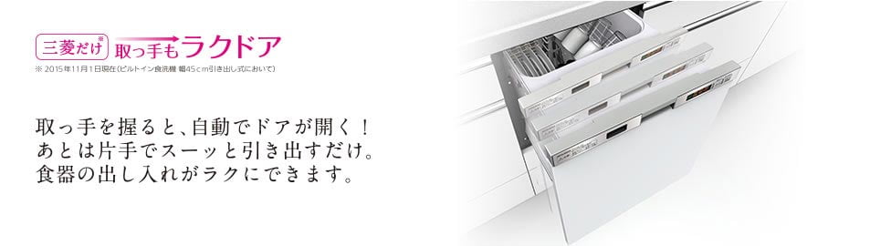 ビルドイン食洗器の大容量でフロントオープン型は海外メーカーでは定番ですが、国内メーカーではめずらしい形状です。