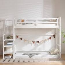 階段を登った上にベッドが付いているタイプで、下の部分に机を置いたり収納スペースにしたりといろいろな使い方ができるベッドです。ベッドの位置が高い分、安定感のある作りで人気です。