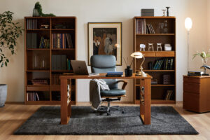 書斎デスクは学習机に比べ、丸みが少なく直線的なデザインが特徴の机です。