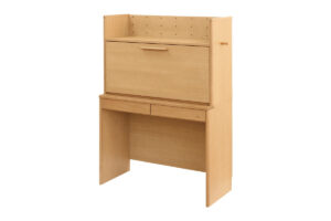 ライティングデスクはフラット扉を手前に倒すとデスクとして使用できる、収納棚付きのコンパクトな机です。
