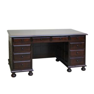 ハンドメイドで丁寧に作り上げられている松本民芸机の中で最も重厚感がある両袖机は、側面や背面まで飾り加工が施されています。