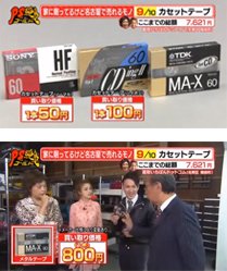 録音済みの中古テープについては、1本では難しいが、10本で???円、100本なら????円程度になることをご紹介。
