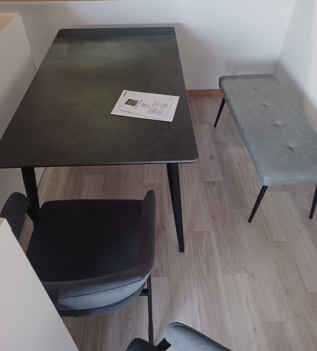 テーブルはセラミック製で、表面には目立つ傷もなく、ステンレス部分にも錆は見られません。